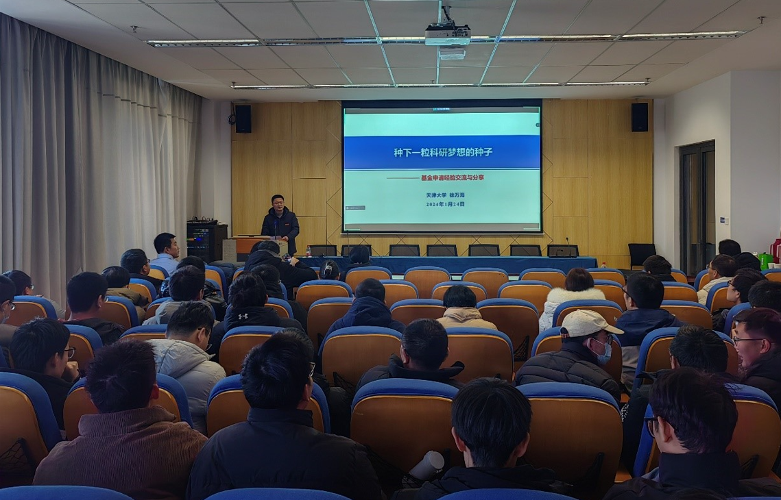 2024年1月24日,天津大学徐万海教授应邀以“种下一颗科研梦想的种子——国家自然基金申请经验分享”为主题做了精彩的讲座。9999js金沙老品牌院长张建主持本次讲座,9999js金沙老品牌青年教师、部分校内、外同行参加讲座。