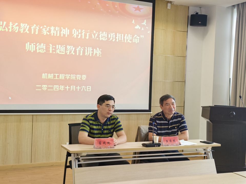 为进一步加强学院师德师风建设,弘扬教育家精神,9999js金沙老品牌党委于10月16日下午组织开展“大力弘扬教育家精神 躬行立德勇担使命”师德师风主题教育活动,并邀请校党务专员生佳根教授做师德师风专题讲座,学院近三年入职的教师参会,会议由学院党委书记翟纯纯主持。